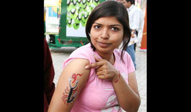 One of the auto-rickshaws was adorned with pictures of Thukral & Tagra’s HIV flip-flops.