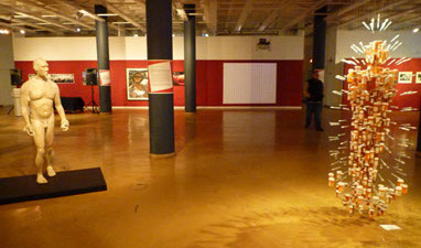 Medicine Man (right) is one of the signature pieces in the internationally touring Not Alone exhibition. It was created by San Francisco artists Daniel Goldstein and John Kapellas with 400 prescription pill bottles.
