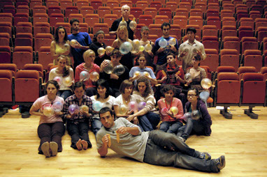 The 2009 AIDS Performance Team and Pieter-Dirk Uys posing with props following their intensive workshop.