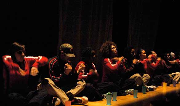 MAKE ART/STOP AIDS brings together students, artists, and local people living with HIV to create performances focusing on HIV/AIDS and stigma-reduction. This theater exercise encourages physical contact as a way to promote group bonding.