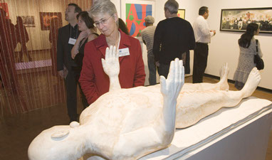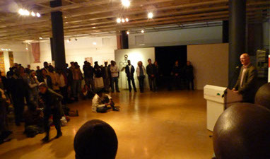 Opening at the UCLA Fowler Museum on February 23, 2008, the MAKE ART/STOP AIDS Exhibition was greeted by one of the largest crowds in the museum's history. An estimated 800 people, including both invited guests and the general public, viewed a performance of Biro by Ntare Guma Mbaho Mwine and then flowed into the exhibition gallery. Fowler Museum staff commented that the opening for MAKE ART/STOP AIDS was not only one of the largest events the museum had ever hosted in terms of attendance, but also that it was the most diverse.