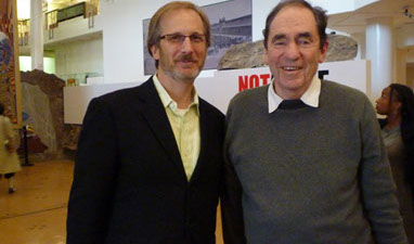 Dr. David Gere and South African Constitutional Court Justice Albie Sachs pose for the camera at the opening of Not Alone in Johannesburg, South Africa on July 19th, 2009.